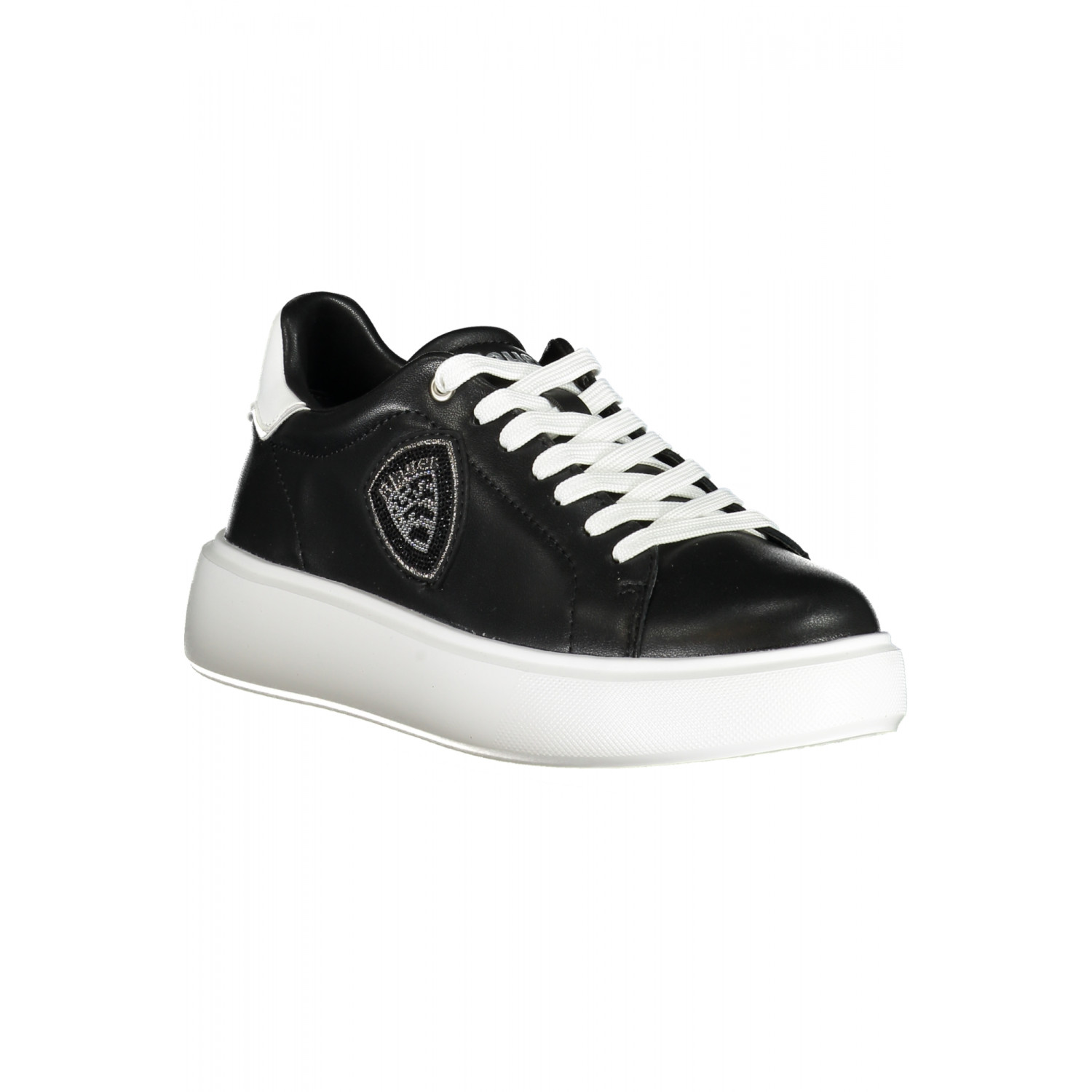 SPORTSCHUH MIT SCHNÜRSENKEL, KONTRASTIERENDEN DETAILS IN WEISS UND STRASS, HERAUSNEHMBARER EINLEGESOHLE, APPLIKATION, PRINT, LOGO